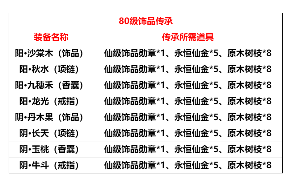 2. 开放80级饰品传承: