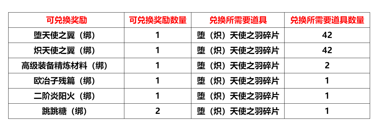 概率掉落:堕(炽)天使之羽碎片*1 、高级装备精炼材料(绑)、装备精炼材料(绑)
