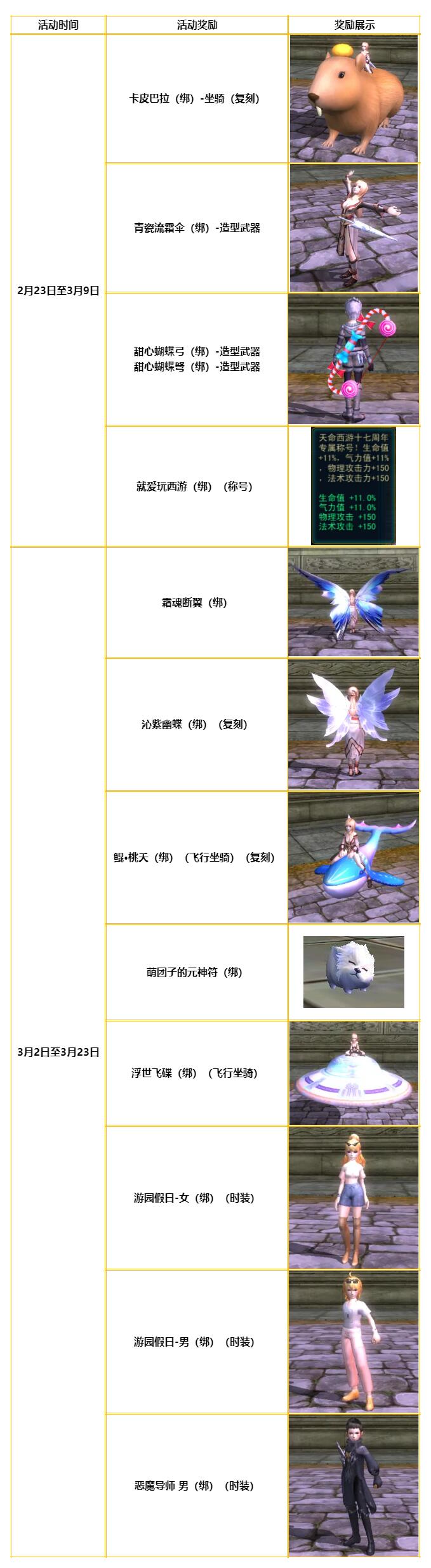 本次更新将开放周年庆上半月活动,3月9日更新后开放周年庆下半月活动,敬请期待!