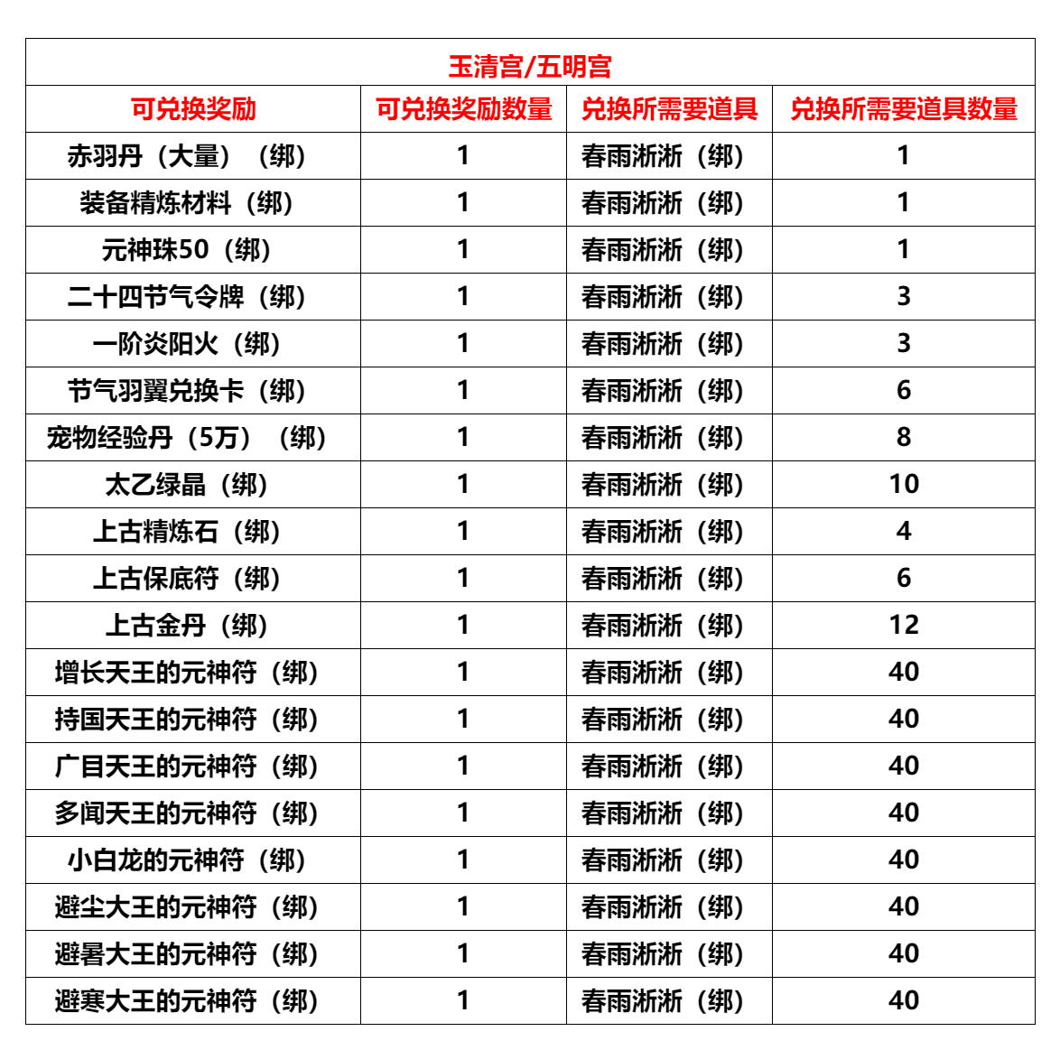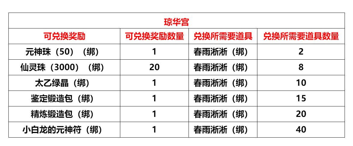活动内容:上交30个道具【杨柳依依(绑)】可兑换30个道具【春雨淅淅(绑)】