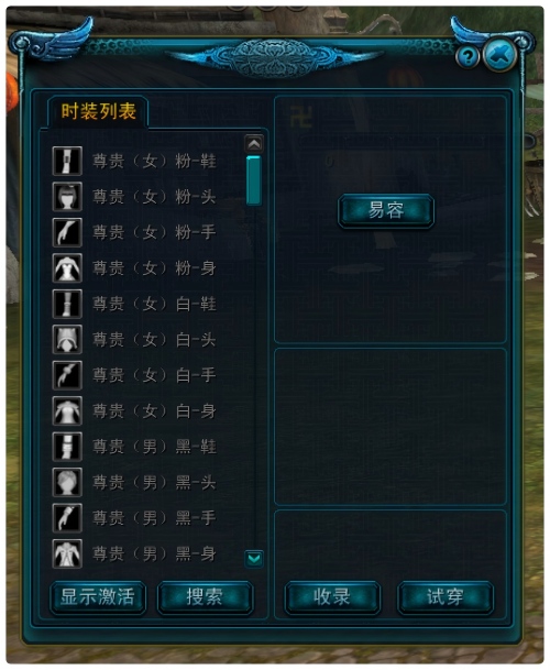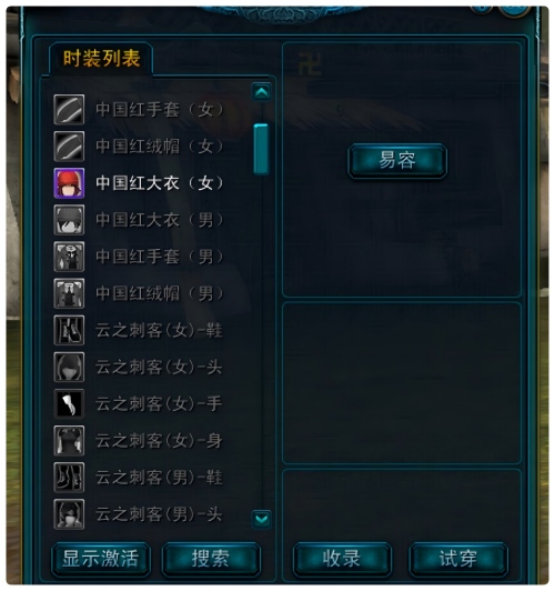单击易容会自动弹出易容界面